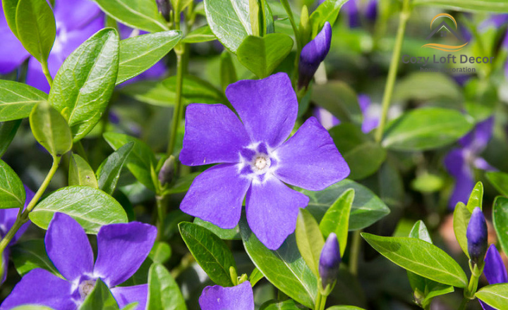Vinca Minor, commonly known as Periwinkle Vine, is a classic choice for shaded gardens. This hardy evergreen ground cover thrives in partial to full shade, spreading beautifully with its glossy green leaves and delicate blue or purple flowers. It blooms in spring and often again in fall, adding subtle color to darker areas.