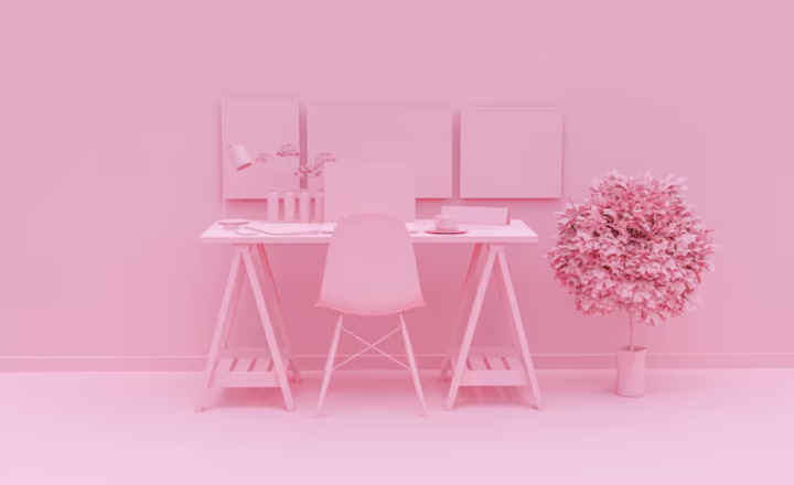 - Pick simple furniture like a modern white table or a pink luxury chair.