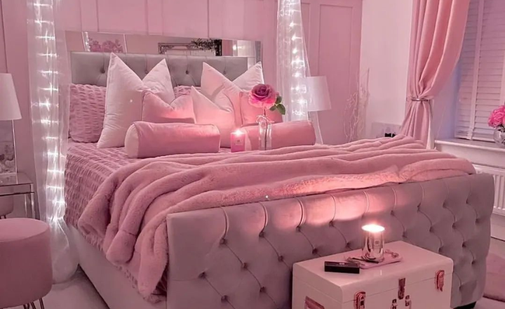 - Use soft pink velvet or silk bedsheets and add golden pillows for a royal touch.
