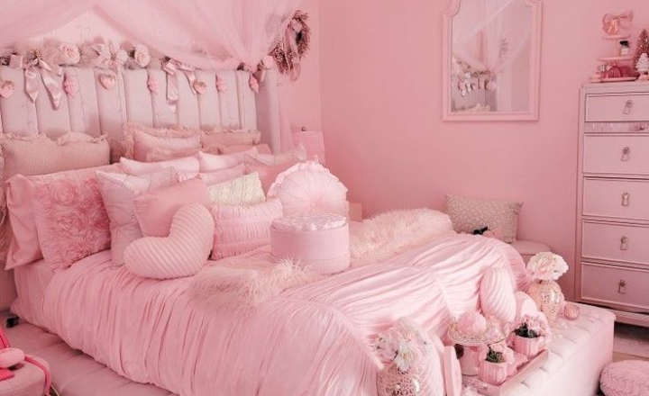 - Add soft pink cushions, blankets, and even a pink throw pillow on the bed or chairs to make everything look even better.