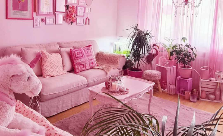 - If there’s space, add a small pink chair or pink sofa to sit on.