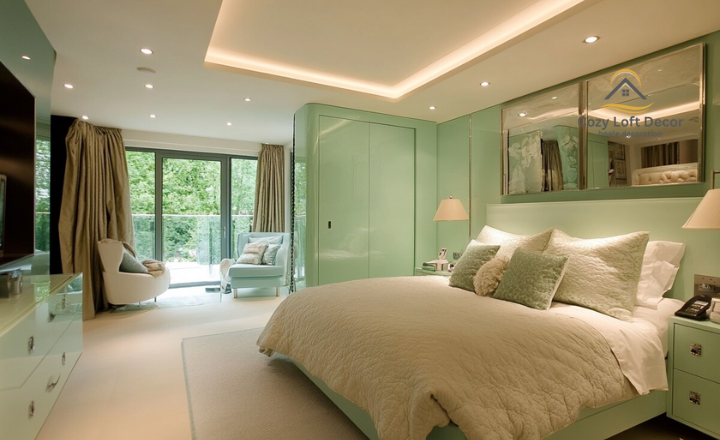 Light green color bedroom