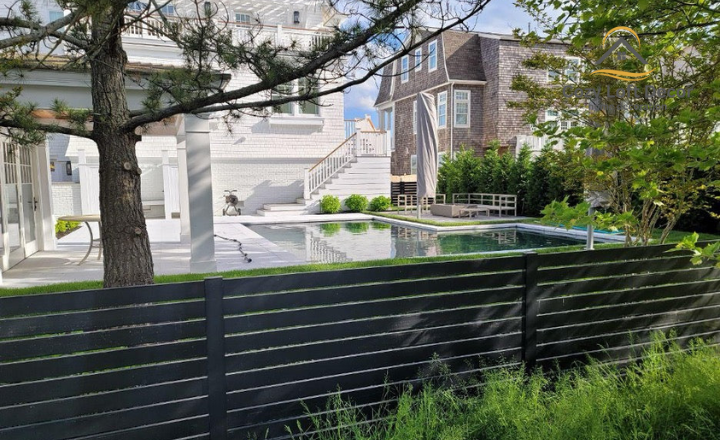 This fence style works well with wood, metal, or composite materials for a sleek, contemporary look. A black horizontal fence offers privacy while maintaining a minimalist aesthetic. It is a popular choice for modern homes seeking elegance and durability.